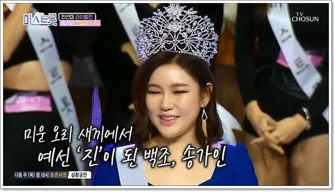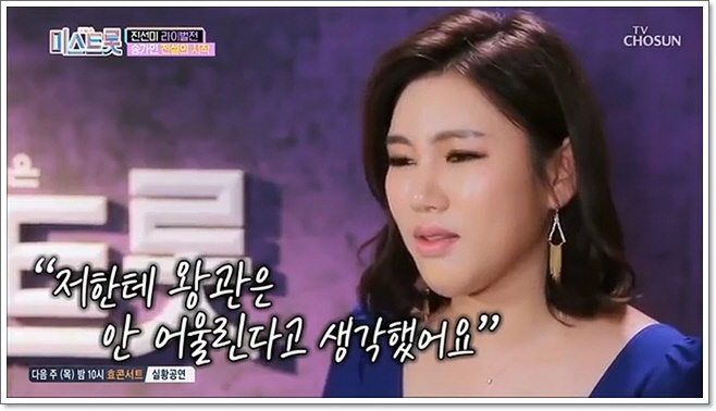 제작진과의 인터뷰에서 "저한테 왕관은 안 어울린다고 생각했어요" "몸매가 안된다, 키가 작다, 못생겼다, 매력이 없다." 송가인님은 절대 그렇지 않아요. 충분한 매력과 아름다운 모습과 그 이상의 노래 실력으로 팬들의 심글을 울리니까요.