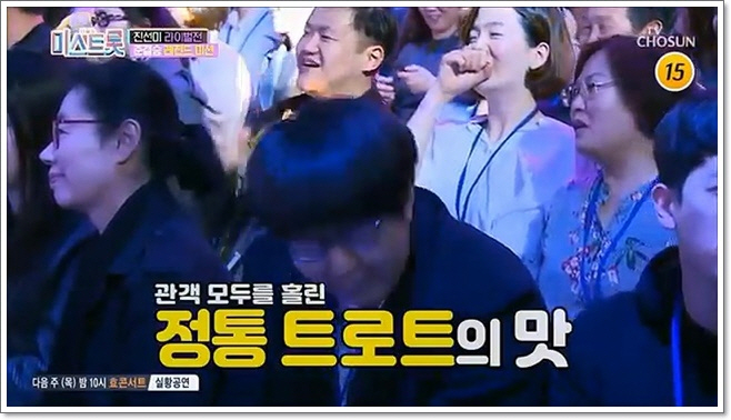 전라도 탑틀라스의 첫 등장은 제작진 예심에서부터 두각을 나타내기 시작하지요. 첫 만남부터 정통트로트 "한만은 대동강"으로 예심 제작진의 환호를 받아요.
